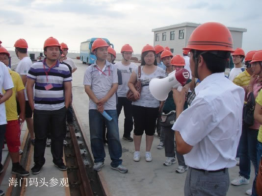 7月10日下午,剛剛做完錄職體檢的新員工們,乘坐公司大巴前往海新船務重工和新通海沙項目工地參觀。在海新重工,袁凌軍副總工程師向新同事們簡要介紹了工程規劃