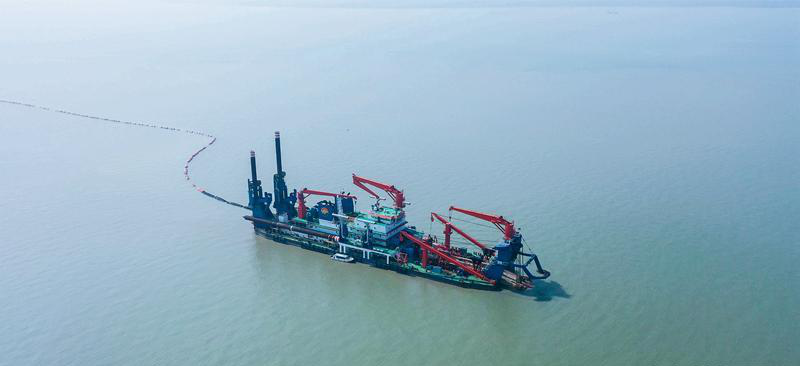 絞吸疏浚船“新海騰”施工作業(yè)航拍照