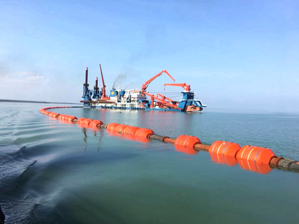 海宏自2019年初接洽該項(xiàng)目以來,多次考察施工現(xiàn)場(chǎng),合同簽訂后先后投入6500m³/h絞吸式挖泥船1艘,8000m³耙吸式挖泥船2艘,多功能錨艇2艘、管線10km以及履帶吊、水挖機(jī)等設(shè)備,百余名員工分批次抵達(dá)施工現(xiàn)場(chǎng)。其中于2019年9月來孟的“新海騰”號(hào)是全世界醉大的非自航式絞吸式挖泥船之一,此次疏浚任務(wù)也是其建成后的首秀,大獲成功。