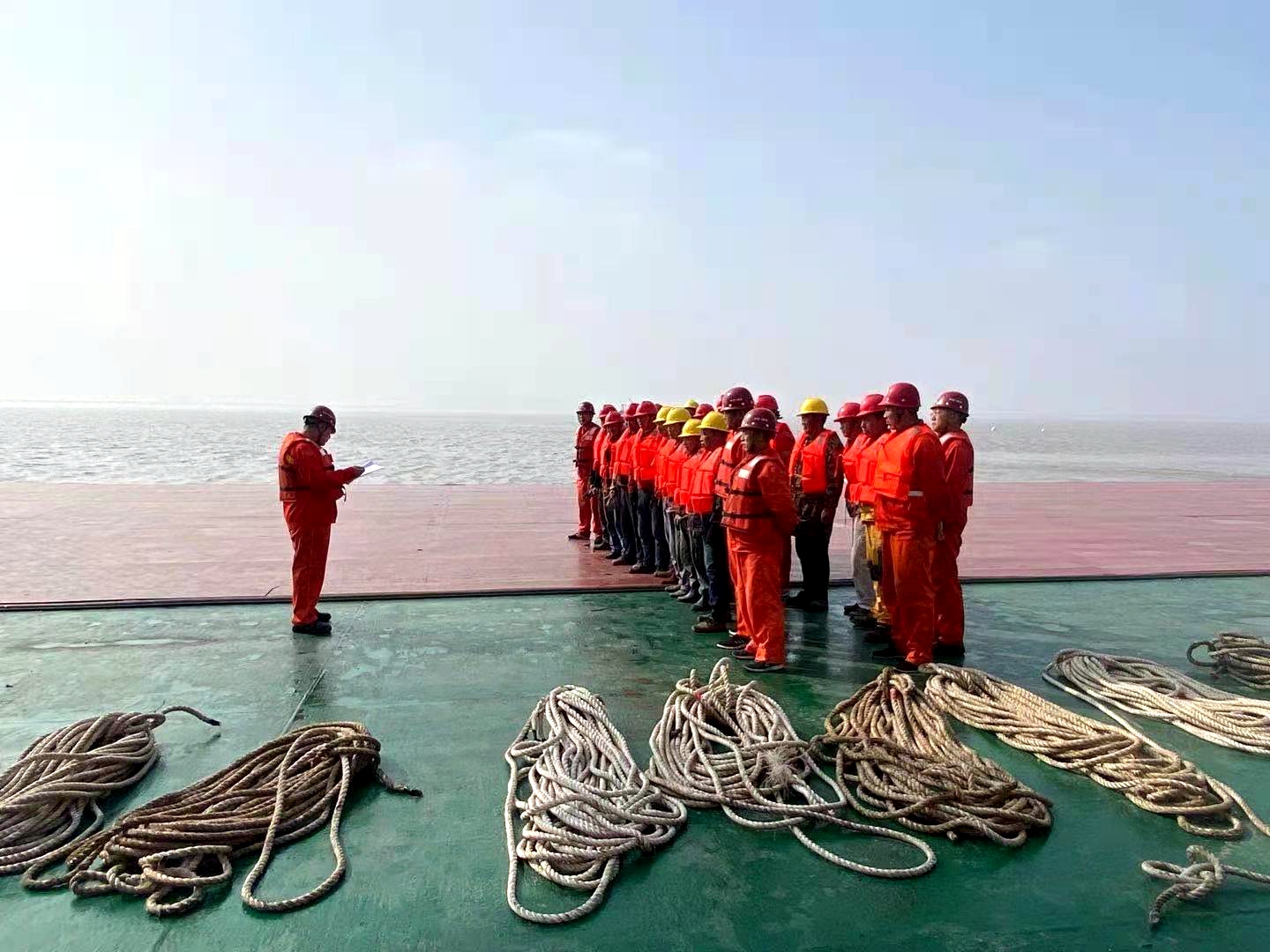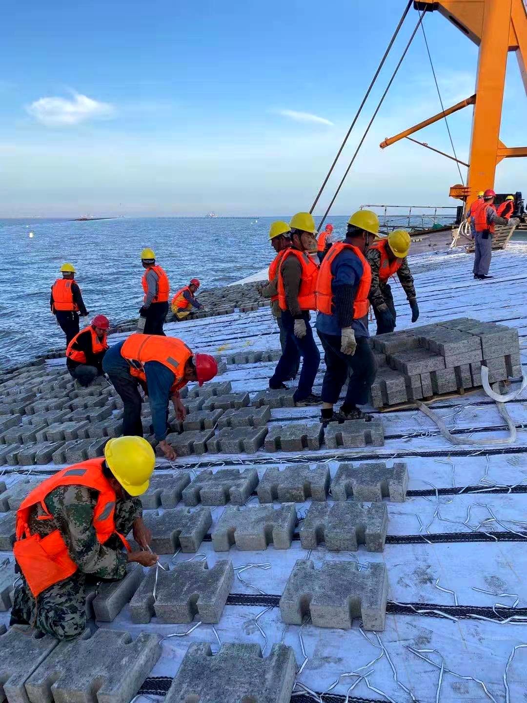 項目部將密切關注后續天氣情況,所有施工以安全為前提,吸砂船提前做好采砂準備,及時匯報砂源情況,施工時加強聯系,避免因移船和風浪造成輸砂管斷裂。在施工期間,項目部針對每層砂袋位置的問題,在與青鋪排3號船長及吸砂船船長進行深度的研究后,決定及時改變吸砂船位置,調整輸砂管道,確保后續施工順利,同時督促吸砂船密切關注砂源情況,優先尋找良好的取砂點,確保工程質量。鋪設軟體排時,項目部時刻和浮吊船保持聯系,協調好第二天的連鎖塊使用計劃,在風浪條件良好的施工階段,抓緊鋪設軟體排,保證材料持續供應,協調后續拋石施工,爭取在軟體排鋪設結束后,銜接好下一道拋石工序,抓緊一切時間,爭取早日完工,彰顯海宏形象!