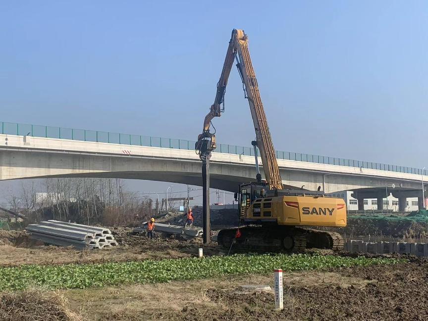 板樁施工班組也在項目部的要求之下增加了一臺360打樁機,由原先的日產量40幾根U型板樁提高到100多根。在年前完成了所有可施工區域。